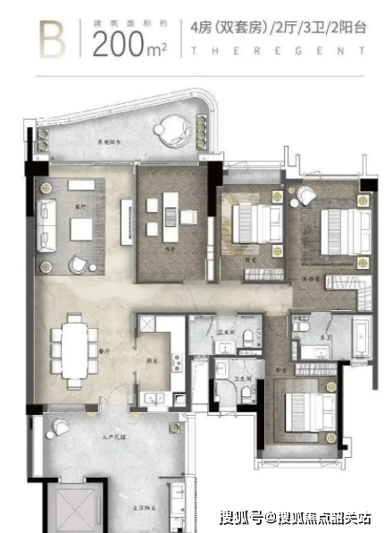 如果说140㎡户型是实用主义的代表,那么200㎡户型则是景观主义的巅峰之作。该户型最大卖点在于270°环幕江景视野,站在客厅或主卧,可将珠江后航道的壮阔景象尽收眼底。7.2米可拓展开间设计,让空间感倍增,可根据家庭需求灵活改造为书房、茶室或多功能区。多功能入户花园不仅增加了储物空间,还可布置成小型绿植角,增添生活情趣。简约半开放式厨房设计,既保持了空间的通透感,又有效隔离油烟,兼顾美观与实用。四个卧室均配有飘窗,采光极佳。主卧带独立卫浴和观景阳台,清晨醒来即可欣赏江上日出,夜晚则可仰望星空,诗意盎然。总价约999万起,适合追求极致景观体验的高净值人群。